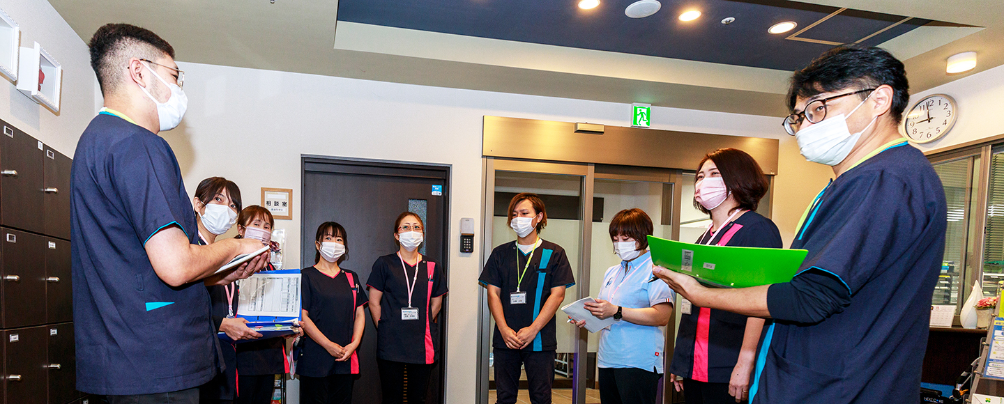 - 今後の方針としては、介護職、看護師、理学療法士などすべて増員し、「より厚みのあるサービス」を提供していきたいです。経験ある方はもちろん未経験でも仕事をしながら資格取得のサポート体制も整っているので、定期的に実施している「お仕事説明会」に参加していただきたいですね。私は施設長になる際「現場にも立つ」ことを条件にお受けしました。介護の仕事はご利用者とともに考え、笑ったり、喜んだりすることに醍醐味があります。そういう仕事をしたい、という気持ちがあれば未経験の方でも大歓迎です。