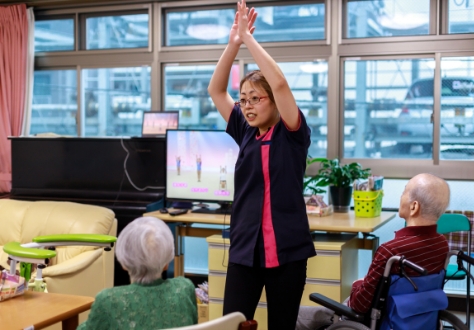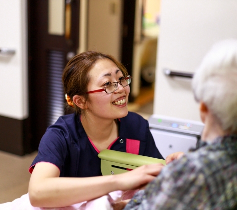 他のスタッフと協力して日常生活の維持や改善を目的に機能訓練を行っています。